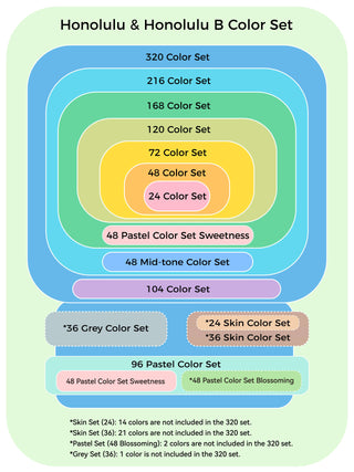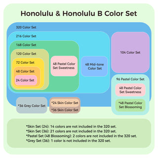 Honolulu and Honolulu B sets have an inclusion relationship. To avoid purchasing duplicate colors, you can choose the appropriate set based on the following inclusion guidelines