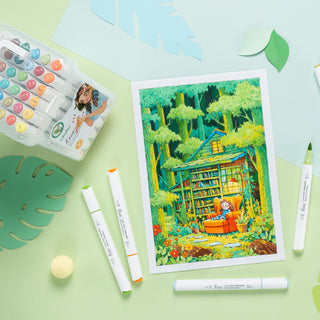 This set offers 35 bright and soft shades—perfect for coloring books, illustrations, manga, or school assignments. The included colorless blender makes it easy to blend colors for smooth gradients. Quick-drying alcohol ink ensures vivid colors without smudging, keeping your artwork lively and vibrant.